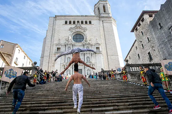 Aerial photos are great because they show the full scale of the attempt, especially in this photo because the building behind the attempt adds perspective. This photo also shows the preparation of the attempt, as the participants get into formation. (Largest human image of a camera)
